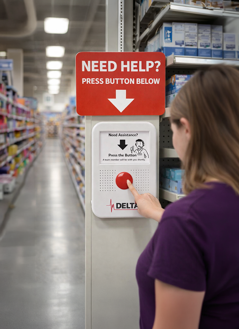 Delta call boxes can connect directly to two-way radio systems, allowing alerts or voice communication to be received by radios carried by staff.